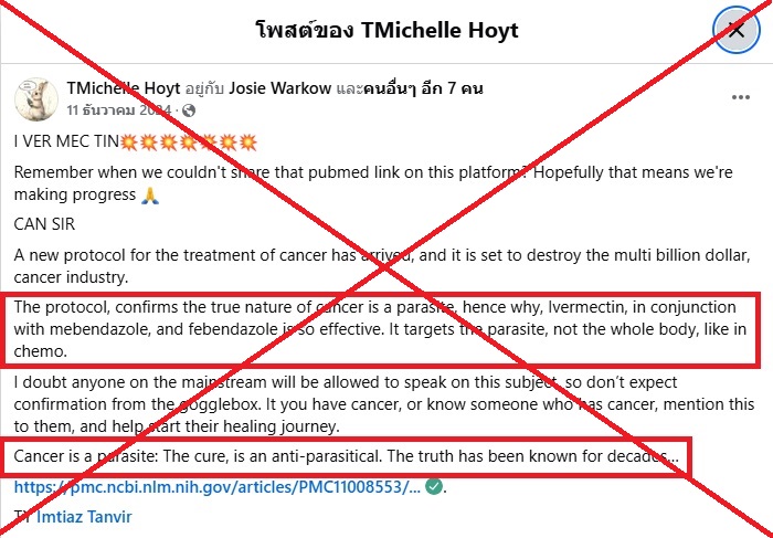 https://www.politifact.com/factchecks/2024/dec/30/facebook-posts/no-cancer-is-not-a-parasite-and-ivermectin-cant-cu/