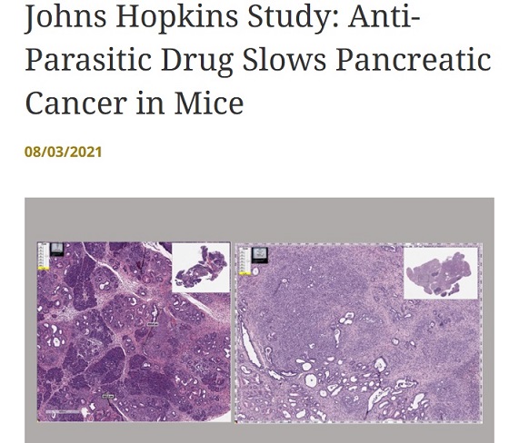 บทความปี 2021 ที่เผยแพร่โดยสถาบัน Johns Hopkins Medicine พบว่า Mebendazole ยากำจัดปรสิตซึ่งมีคุณสมบัติคล้ายกับยา Fenbendazole ช่วยชะลอการเติบโตของมะเร็งตับอ่อนในหนูทดลอง