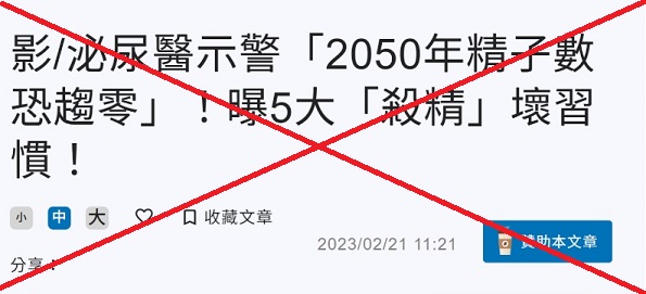 - งานวิจัยไม่ได้บอกว่าอสุจิชายทั่วโลกจะเป็น 0 ในปี 2050 ตามที่กล่าวอ้าง