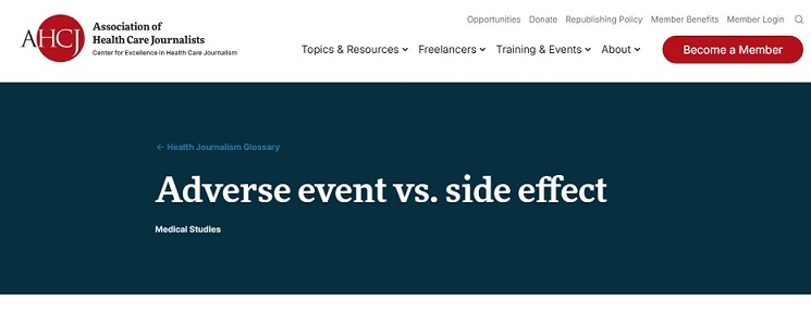 ขณะที่ อาการข้างเคียง (Side Effect) คือสิ่งที่ได้รับการยืนยันแล้วว่า เป็นอาการที่มีความสัมพันธ์จากการใช้ยาหรือวัคซีน ต่างจาก เหตุการณ์ไม่พึงประสงค์ (Adverse Events) ที่แม้จะเป็นสิ่งที่เกิดขึ้นหลังจากการใช้ยาหรือวัคซีนแล้ว แต่ก็ยังไม่มีการพิสูจน์ว่า อาการดังกล่าวมีสาเหตุมาจากการใช้ยาหรือวัคซีนหรือไม่