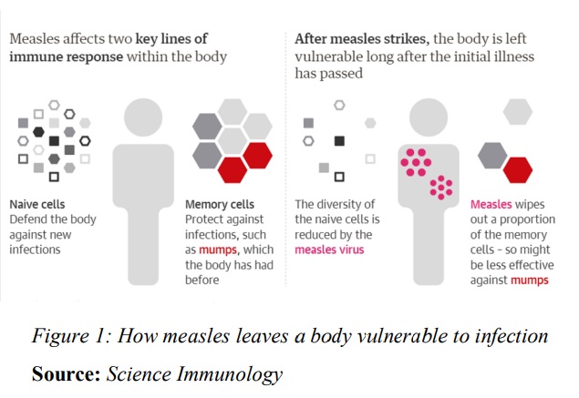 แม้โรคหัดจะไม่ทำให้ผู้ติดเชื้อมีอันตรายถึงชีวิต แต่ไวรัสโรคหัดมีความสามารถในการลบความทรงจำจากระบบภูมิคุ้มกัน ก่อให้เกิดอาการที่เรียกว่าภาวะ Immune Amnesia ทำให้ระบบภูมิคุ้มกันไม่สามารถจดจำการติดเชื้อที่เคยเกิดขึ้นในอดีต เพิ่มความเสี่ยงให้ผู้ป่วยเกิดการติดเชื้อซ้ำหลาย ๆ ครั้ง และเพิ่มโอกาสการเกิดอาการแทรกซ้อนมากขึ้น