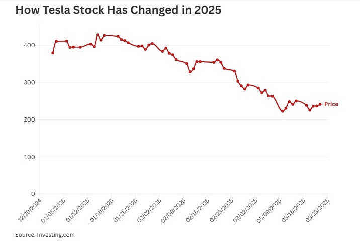 การกระทำของ อีลอน มัสก์ รวมกับนโยบายการขู่ตั้งกำแพงภาษีต่อประเทศต่าง ๆ ของ โดนัลด์ ทรัมป์ สร้างความไม่พอใจแก่ผู้คนทั้งในสหรัฐฯ และประชาชนในหลายประเทศ นำไปสู่กระแสต่อต้านรถยนต์ Tesla ด้วยการชุมนุมประท้วงที่โชว์รูมรถยนต์ Tesla ตามประเทศต่าง ๆ มีการสร้างความเสียหายต่อรถยนต์ Tesla ตามที่สาธารณะ ตลอดจนกระแสการระงับคำสั่งซื้อหรือการขายรถยนต์ Tesla ของประชาชนที่ไม่พอใจการก้าวก่ายการเมืองของ อีลอน มัสก์ จนยอดขายรถยนต์ Tesla และราคาหุ้นของ Tesla ต้องตกต่ำอย่างหนักในช่วง 2 เดือนที่ผ่านมา