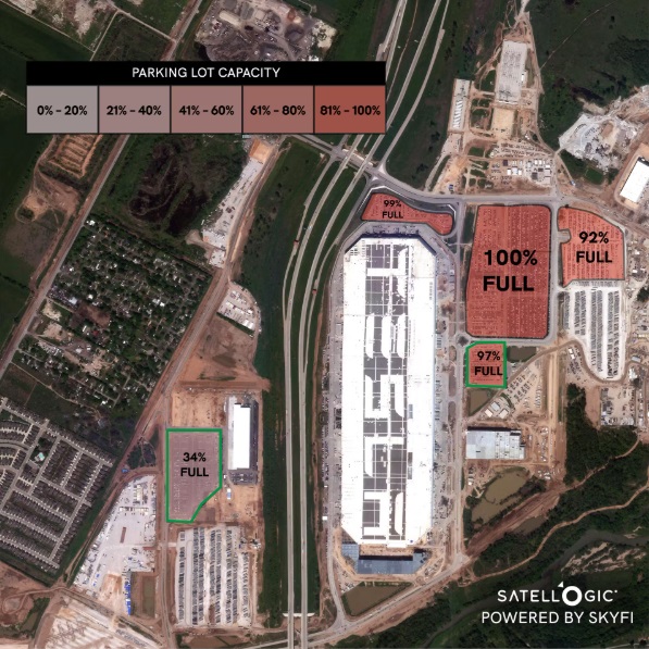Sherwood ได้นำภาพถ่ายดาวเทียมบริเวณรอบ ๆ โรงงาน Tesla Gigafactory ในเมืองออสติน รัฐเท็กซัส และลานจอดรถที่ Chesterfield Mall ห้างร้างใกล้กับเมืองเซนต์หลุยส์ รัฐมิสซูรี ซึ่งใช้เป็นสถานที่สำหรับพักรถยนต์ Tesla เพื่อรอการจำหน่าย
