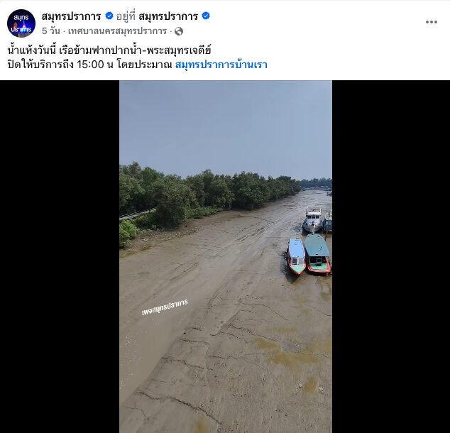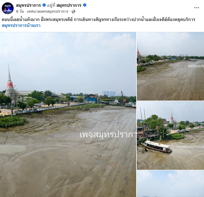 ศูนย์ชัวร์ก่อนแชร์ ตรวจสอบพบว่า ภาพและคลิปที่ส่งต่อในไลน์ดังกล่าว มีการเผยแพร่ผ่านทางเพจเฟซบุ๊กสมุทรปราการ เมื่อวันที่ 1 เมษายน 2568 และวันที่ 2 เมษายน 2568 โดยต้นโพสต์เป็นการรายงานสถานการณ์ที่เกิดขึ้นบริเวณท่าเรือข้ามฟากปากน้ำ-พระสมุทรเจดีย์ อำเภอพระสมุทรเจดีย์ จังหวัดสมุทรปราการ ที่น้ำในแม่น้ำแห้ง ทำให้การสัญจรทางเรือระหว่างสองฝั่งต้องหยุดให้บริการชั่วคราว