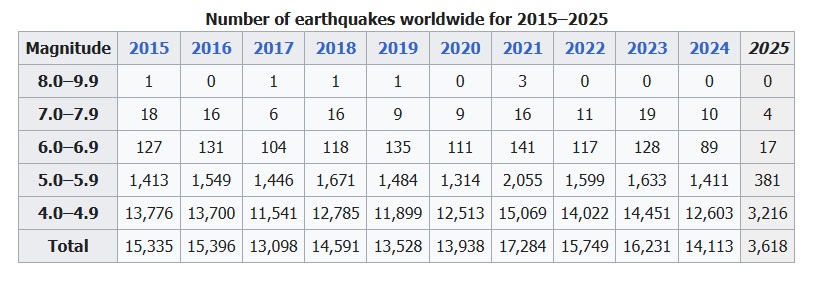 ข้อมูลจากสำนักงานสำรวจธรณีวิทยาสหรัฐฯ (USGS) ระบุว่า ในแต่ละปีมีการเกิดเหตุแผ่นดินไหวทั่วโลกนับแสนครั้ง โดยเฉพาะพื้นที่รอบ ๆ เมืองยูเรกาที่อยู่ทางตอนเหนือของแคลิฟอร์เนีย เป็นจุดที่แผ่นเปลือกโลก 3 แผ่นมาบรรจบกัน ส่งผลให้เป็นหนึ่งในพื้นที่ที่เกิดแผ่นดินไหวบ่อยที่สุดในโลก โดยมีแผ่นดินไหวเฉลี่ยปีละ 700 ครั้ง หรือสัปดาห์ละ 10 ครั้ง