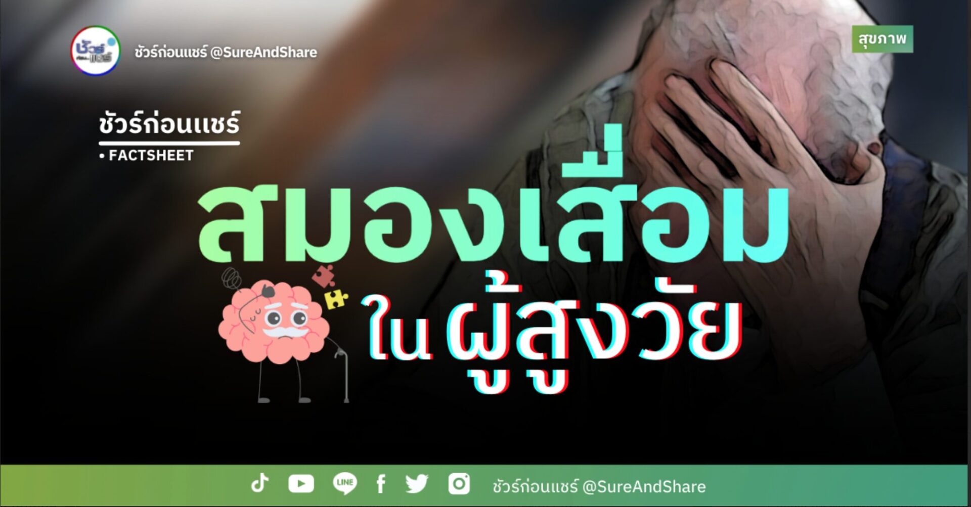 ดูเพิ่มเติมรายการ ชัวร์ก่อนแชร์ FACTSHEET : สมองเสื่อมในผู้สูงวัย