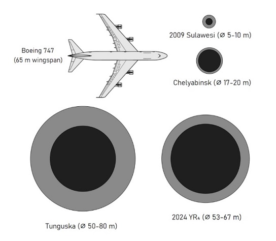 เมื่อเดือนมีนาคม 2025 กล้องโทรทรรศน์อวกาศเจมส์ เวบบ์ ใช้กล้องถ่ายคลื่นใกล้อินฟราเรด ประเมินขนาดของดาวเคราะห์น้อย 2024 YR4 ว่าน่าจะมีเส้นผ่านศูนย์กลางที่ 60 เมตรเท่านั้น