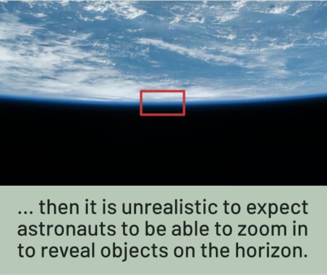 ซึ่งเป็นเหตุผลเดียวกับที่กล้องทั่วไปไม่สามารถถ่ายภาพวัตถุที่อยู่ตรงเส้นขอบฟ้าจากเครื่องบินพาณิชย์ได้เช่นกัน