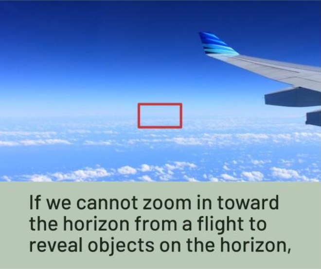 เครื่องบินพาณิชย์ที่บินในความสูงระดับ 11 กิโลเมตรหรือ 35,000 ฟุต จะมองเส้นขอบฟ้าได้ไกลถึง 369 กิโลเมตร ซึ่งกล้องทั่วไปไม่สามารถซูมเห็นวัตถุที่อยู่ไกลขนาดนั้น
