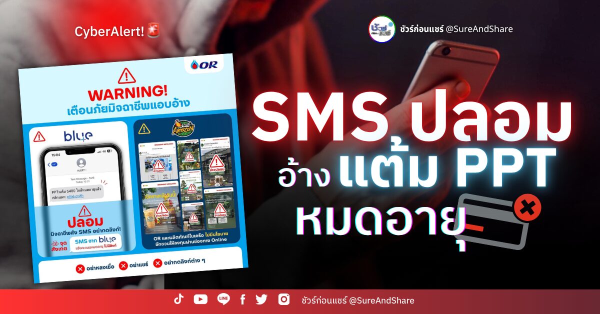 บริษัท ปตท. น้ำมันและการค้าปลีก จำกัด (มหาชน) หรือ OR แนะผู้ใช้บริการ blueplus+ และผลิตภัณฑ์ในเครือ OR ระวังภัยออนไลน์ หลังพบมิจฉาชีพส่ง SMS ปลอม แจ้งเตือนคะแนนหมดอายุ หรือชวนลงทุน แอบอ้างผลิตภัณฑ์ในเครือ OR หรือ Café Amazon พร้อมแนบลิงก์หลอกให้คลิกก่อนสูญเงิน – ข้อมูลส่วนตัว