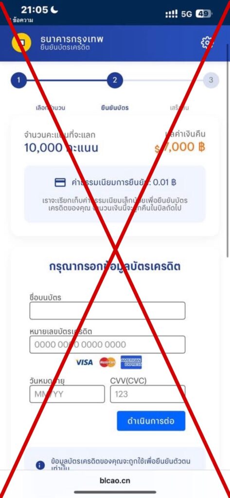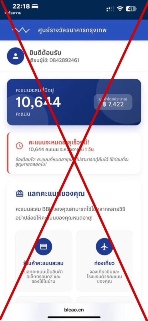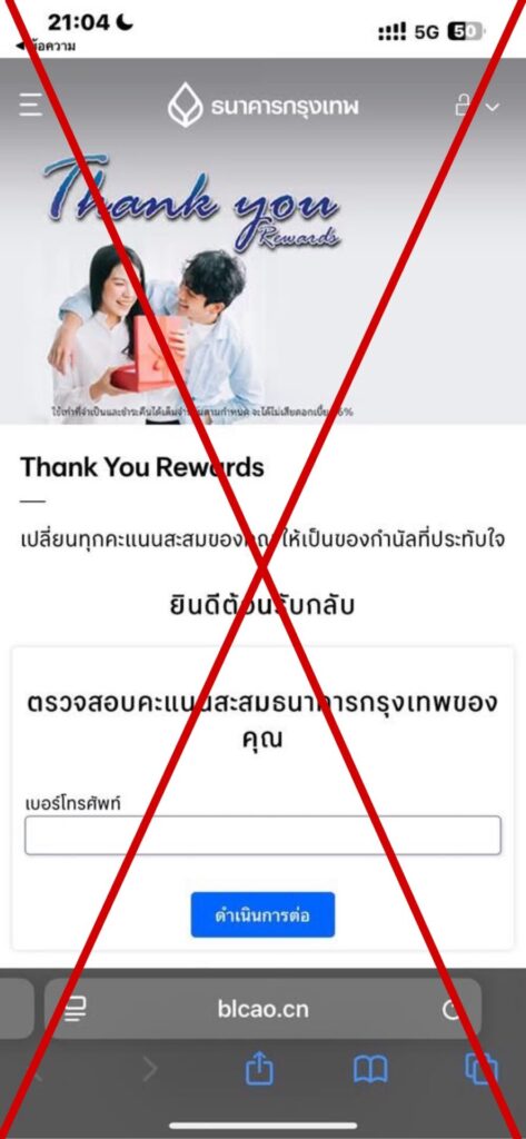 ช่วงนี้มิจฉาชีพกำลังอาละวาดหนัก ส่ง SMS หลอกลวง อ้างเป็นธนาคารกรุงเทพ มาพร้อมกับกลลวงแลกแต้มบัตรเครดิต เพื่อหลอกให้กดลิงก์ กรอกข้อมูลส่วนตัว และรหัส OTP โดยกรณีล่าสุดเผยให้เห็นถึงความแนบเนียนของกลโกงที่เลียนแบบเว็บไซต์ธนาคารจริง