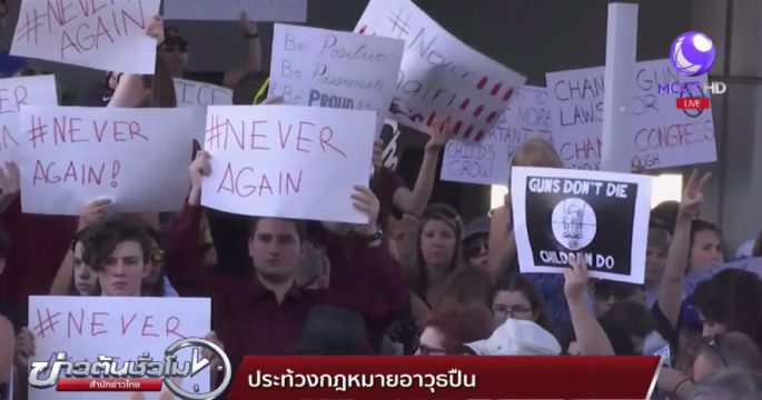 ชาวอเมริกันหลายพันคน ออกมาชุมนุมประท้วงเรียกร้องให้แก้ไขกฎหมายควบคุมอาวุธปืน ในเมืองฟอร์ท ลอว์เดอร์เดล รัฐฟลอริดา ห่างจากโรงเรียนที่เกิดเหตุมือปืนวัยรุ่นอดีตศิษย์เก่าของโรงเรียนดังกล่าว เข้าไปก่อเหตุยิงเด็กนักเรียนเสียชีวิตและบาดเจ็บ 17 คน