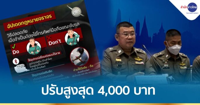 ตร.ย้ำการใช้โทรศัพท์เคลื่อนที่ของผู้ขับขี่ขณะขับรถ ต้องใช้อุปกรณ์เสริมสำหรับสนทนา ห้ามถือหรือจับ ฝ่าฝืนปรับสูงสุดไม่เกิน 4,000 บาท