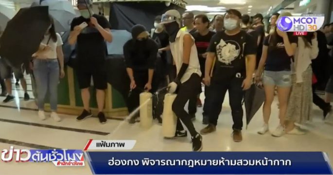 สื่อฮ่องกงรายงานว่า ทางการเตรียมใช้กฎหมายฉุกเฉินห้ามประชาชนสวมหน้ากากที่ผู้ประท้วงมักนำมาใช้อำพรางใบหน้าและป้องกันแก๊สน้ำตา
