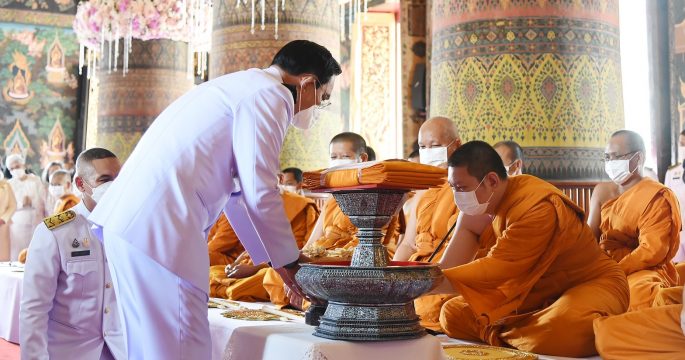 นายกรัฐมนตรีถวายผ้าพระกฐินพระราชทานสำนักนายกรัฐมนตรี ประจำปี 2564 ณ วัดหงส์รัตนารามราชวรวิหาร พร้อมถวายจตุปัจจัย ยอดเงินรวม 10,008,846.72 บาท
