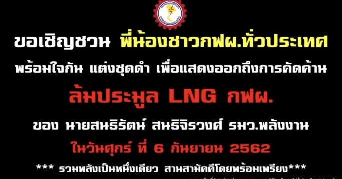 สร.กฟผ.นัดแต่งดำคัดค้านมติ กบง. ล้มประมูล LNG ด้านผู้บริหารรอมติ ครม. ที่ชัดเจนก่อนประกาศยกเลิกประมูล