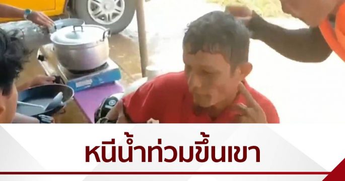ช่วยเหลือคนหนีน้ำท่วมนั่งตากฝนบนเขา