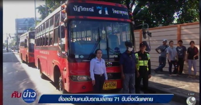 กรมการขนส่งทางบก สั่งลงโทษคนขับรถเมล์สาย 71 ปฐวิกรณ์-วัดธาตุทอง ทั้งปรับและสั่งพักงาน 1 เดือน หลังขับซิ่งแบบเฉียดตายบนถนนพระราม 9 ระหว่างรับผู้โดยสาร