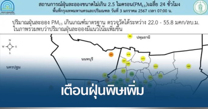 ค่าฝุ่น PM2.5 ยังเกินค่ามาตรฐาน 45 จังหวัด