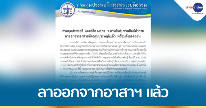 กรมคุมประพฤติ แจงอดีต ผอ.โรงเรียน จ.กาฬสินธุ์ ชวนศิษย์ค้าประเวณี ลาออกจากอาสาสมัครคุมประพฤติแล้ว พร้อมสั่งถอดถอน