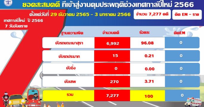 เมาขับปีใหม่ 2567 ยอดสะสม 4 วัน กว่า 3 พันคดี
