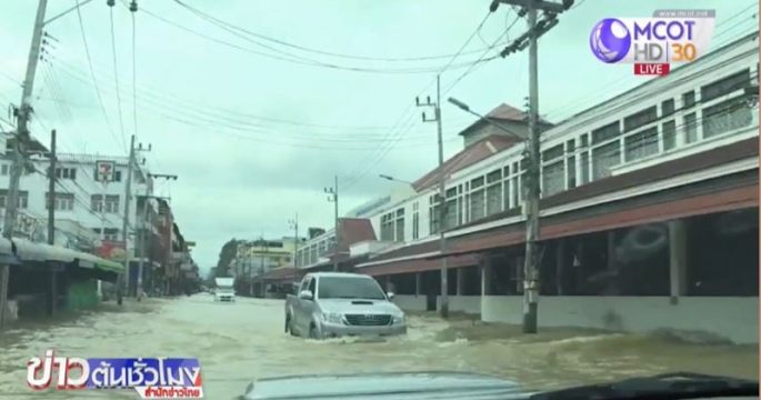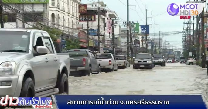 มวลน้ำป่าจากภูเขาใน ต.คีรีวง อ.ลานสกา ไหลบ่าเข้าท่วม ถ.พัฒนาการคูขวาง ตั้งแต่กลางดึกที่ผ่านมา ทำให้เช้าวันนี้ร้านค้านับร้อยร้านในย่านนี้ต้องหยุดกิจการชั่วคราว
