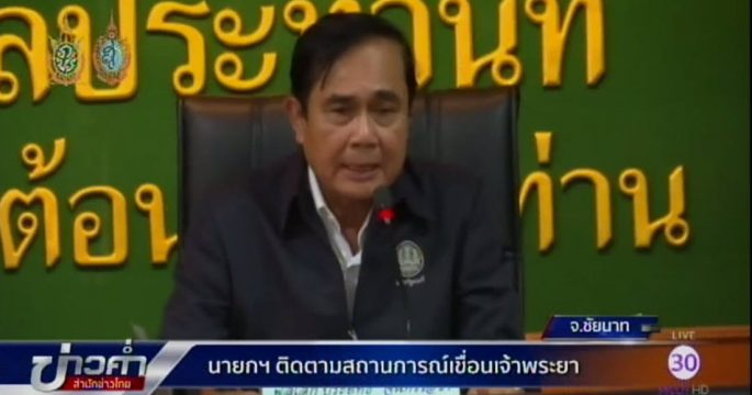 นายกรัฐมนตรีเดินทางไปยัง จ.ชัยนาท เพื่อรับฟังสถานการณ์น้ำบริเวณเขื่อนเจ้าพระยา ขณะที่กรมชลประทาน ยืนยันน้ำอยู่ในเกณฑ์ปกติ ไม่กระทบกรุงเทพมหานครแน่นอน