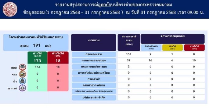 สรุปสถานการณ์อุทกภัยบนโครงข่ายของกระทรวงคมนาคม