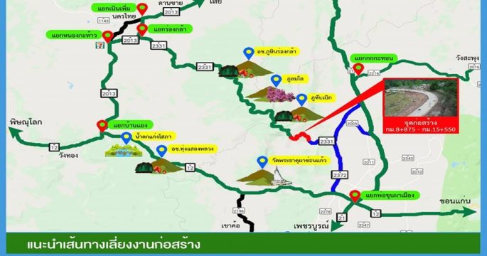 ซ่อมถนนทางขึ้นภูทับเบิก! กรมทางหลวงแนะนำนักท่องเที่ยว ใช้ ทล. 12 นครไทย – ภูทับเบิก