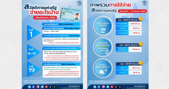 กรมบัญชีกลางอัปเดตสวัสดิการฯ เดือน ก.ย.68