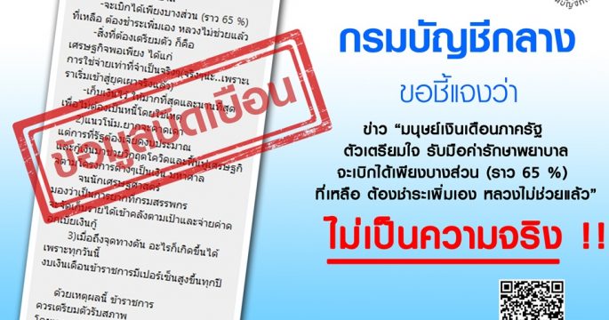 กรมบัญชีกลางย้ำผู้มีสิทธิ์และบุคคลในครอบครัว ตรวจสอบสิทธิ์เบิกจ่ายตรงค่ารักษาพยาบาลก่อนเข้ารับการรักษา
