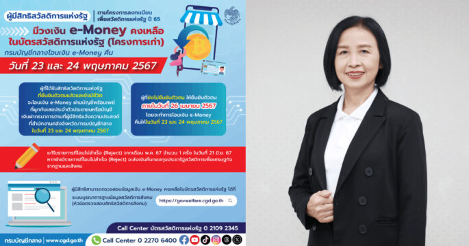 กรมบัญชีกลางแจ้งผู้ใช้สิทธิสวัสดิการฯ ตรวจสอบวงเงิน e-Money คงเหลือในบัตรสวัสดิการฯ เดิมเพื่อรับเงินคืน