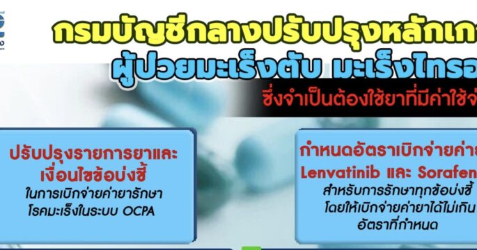 กรุงเทพฯ 1 ก.พ.-กรมบัญชีกลางปรับปรุงหลักเกณฑ์ฯ ผู้ป่วยโรคมะเร็งตับ มะเร็งไทรอยด์ ยา มีค่าใช้จ่ายสูง เพื่อรักษาข้าราชการและครอบครัวเผชิญโรคร้ายแรง