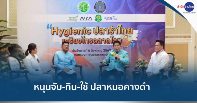 กระทรวงเกษตรและสหกรณ์ กรมประมง ภาครัฐ และเอกชน ร่วมส่งเสริมการจับ-กิน-ใช้ ปลาหมอคางดำ พร้อมแชร์ไอเดีย “ปลาหมอคางดำ ทำอย่างไรให้เป็นปลาร้า Hygienic” เทคนิคการแปรรูปปลาหมอคางดำเป็นน้ำปลาร้าแบบถูกสุขลักษณะ พร้อมนำเสนอ 5 เมนู สุดพิเศษจากปลาหมอคางดำที่ปรุงคู่กับปลาร้าไทย จากเชฟชุมพล เพื่อเป็นไอเดียหนุนภาคประชาชนมีส่วนร่วมในการควบคุมและกำจัดปลาหมอคางดำเพื่อการบริโภคเพิ่มขึ้น