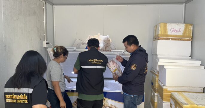 ปทุมธานี 24 พ.ค. – อธิบดีกรมปศุสัตว์เผย ส่งเจ้าหน้าที่ชุดเฉพาะกิจลุยตรวจสอบเพื่อป้องกันและปราบปรามการลักลอบนำเข้าเนื้อสัตว์เถื่อนต่อเนื่อง ล่าสุดบุกตรวจห้องเย็น 2 แห่งใน ต.คลองหลวง อ.คลองหลวง จ.ปทุมธานี พบซุกซ่อนเนื้อควายที่ระบุต้นทางมาจากอินเดีย รวม 3,638 กิโลกรัม จึงอายัดไว้เพื่อตรวจสอบ หากเจ้าของห้องเย็นไม่สามารถนำหลักฐานการนำเข้าและการอนุญาตเคลื่อนย้ายมาแสดงได้ จะดำเนินคดีอย่างเด็ดขาด นายสัตวแพทย์สมชวน รัตนมังคลานนท์ อธิบดีกรมปศุสัตว์สั่งการให้เจ้าหน้าที่ชุดเฉพาะกิจจากกองสารวัตรและกักกันร่วมกับด่านกักกันสัตว์สุวรรณภูมิและด่านกักกันสัตว์ราชบุรีตรวจสอบการเคลื่อนย้ายสินค้าปศุสัตว์ในพื้นที่ตำบลคลองหลวง อำเภอคลองหลวง จังหวัดปทุมธานี ตามที่ได้รับเรื่องร้องเรียนว่า มีการลักลอบเคลื่อนย้ายสินค้าปศุสัตว์ที่ลักลอบนำเข้าจากต่างประเทศ เมื่อนำสืบตามรายละเอียดข้อมูลที่ได้เพิ่มเติมจากปศุสัตว์อำเภอคลองหลวงและปศุสัตว์จังหวัดปทุมธานีจึงมั่นใจว่า มีการนำซุกซ่อนไว้ในห้องเย็น 2 แห่งในพื้นที่ จึงได้เข้าตรวจสอบพบรายละเอียดดังนี้ – ผู้กระทำความผิด รายที่ 1 พบของกลาง 7 รายการ น้ำหนักรวม 2,625 กิโลกรัม ประกอบด้วย 1. เนื้อกระบือ ยี่ห้อ Allana 21 กล่อง น้ำหนัก 420 กิโลกรัม 2. เนื้อกระบือ ยี่ห้อ AL-tamam […]