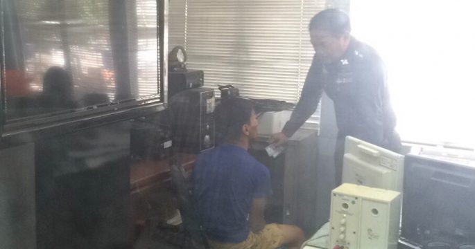 รปภ.กรมป่าไม้ รวบโจรลักขโมยน้ำมันรถยนต์ส่งตำรวจ สน.บางเขน แฉใช้วิธีเจาะท่อใต้ถังน้ำมันก่อนดูดใส่แกลลอน สอบยังปฏิเสธ