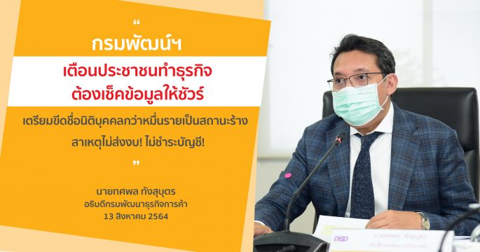 นนทบุรี 25 ส.ค.-อธิบดีกรมพัฒนาธุรกิจการค้าเผยยอดจดทะเบียนนิติบุคคลทั่วประเทศตั้งใหม่ประจำเดือนก.ค.64 ลดลงเล็กน้อยจากพิษโควิด ภาครัฐสั่งหยุดล็อกดาวน์กิจการชั่วคราว แต่ยังมั่นใจยอดจดทั้งปีเกินกว่า 60,000 รายได้จากการฟื้นตัวภาคการส่งออกที่เติบโตได้ต่อเนื่องในช่วงครึ่งปีหลังนี้