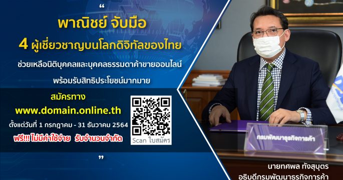 นนทบุรี 18 มิ.ย.-พาณิชย์ จับมือ 4 องค์กรผู้เชี่ยวชาญบนโลกดิจิทัลของไทยช่วยเหลือนิติบุคคลและบุคคลธรรมดาค้าขายออนไลน์ ย้ำฟรีค่าสมาชิกวิสามัญและสิทธิประโยชน์มากมายพร้อมให้คำปรึกษารับเพียง 50,000 ราย สมัครได้ตั้งแต่ 1 กรกฎาคม – 31 ธันวาคม 2564 นี้