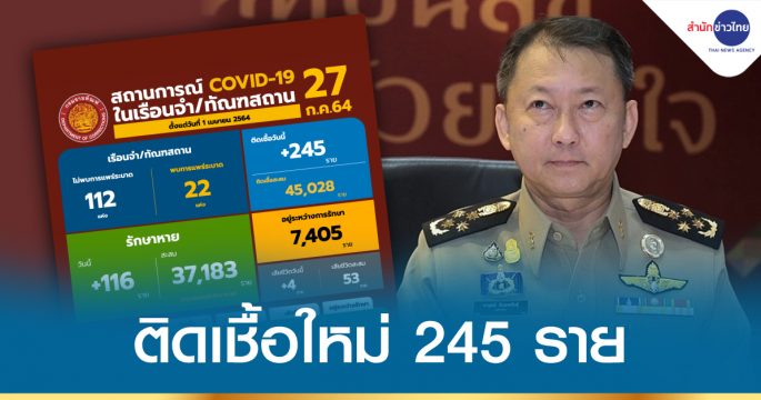 กรมราชทัณฑ์ รายงานสถานการณ์โควิด-19 ประจำวัน ไม่พบเรือนจำแพร่ระบาดเพิ่มต่อเนื่องเป็นวันที่ 4 ขณะที่พบผู้ต้องขังติดเชื้อใหม่ 245 ราย