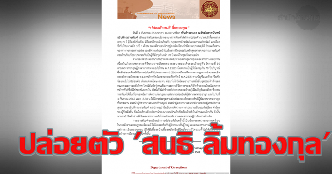 กรมราชทัณฑ์ ปล่อยตัว ‘สนธิ ลิ้มทองกุล’ แล้ววันนี้ เข้าหลักเกณฑ์พระราชทานอภัยโทษ รับที่ผ่านมาตีความทางกฏหมายคลาดเคลื่อน