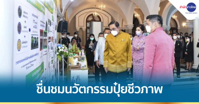 นายกรัฐมนตรีเยี่ยมชมนิทรรศการแสดงผลงานวิจัยนวัตกรรมปุ๋ยชีวภาพและการกำจัดศัตรูพืชด้วยสารสกัดจากพืชและชีวภัณฑ์ของกรมวิชาการเกษตร ตามนโยบายของรัฐบาลในการสนับสนุนและส่งเสริมการผลิตระบบเกษตรอินทรีย์ และเกษตรปลอดภัย
