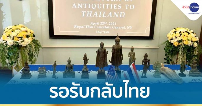 กรมศิลปากร รับมอบประติมากรรมรูปเคารพ จำนวน 13 รายการ ที่ยึดได้จากการดำเนินคดีในสหรัฐอเมริกา ผ่านกระทรวงการต่างประเทศ