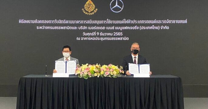 กรุงเทพฯ 9 ธ.ค.-กรมสรรพสามิต เซ็น MOU ร่วมกับบริษัท เมอร์เซเดส-เบนซ์ เตรียม ลดภาษีสรรพสามิตนำเข้ารถยนต์ไฟฟ้า เผย ล่าสุด ผู้ประกอบการร่วมลงนามแล้วรวม 12 ราย ขณะที่ยอดขอรับเงินอุดหนุนการใช้รถไฟฟ้าล่าสุด มีเกือบ 2,000 คัน คาดถึงสิ้นปีนี้ยอดพุ่งถึง 25,000 คัน