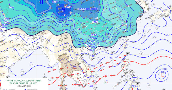 กรมอุตุฯ เผยมวลอากาศเย็นกำลังค่อนข้างแรง ปกคลุมประเทศไทยตอนบน ทำให้มีอากาศเย็นถึงหนาว “เหนือ-อีสาน” เจอฝนตกบางแห่ง