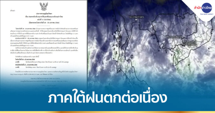 อธิบดีกรมอุตุนิยมวิทยาระบุ มวลอากาศเย็นแผ่เสริมลงมาปกคลุมประเทศไทยอีกระลอกแล้ว จะทำให้ประเทศไทยตอนบนอุณหภูมิลดลง โดยยอดภูยอดดอยอากาศเย็นถึงหนาว ลมแรงขึ้น ลักษณะเช่นนี้จะส่งผลให้ภาคใต้ที่มีฝนตกอยู่แล้ว ต้องเฝ้าระวังฝนตกต่อเนื่องถึงต้นเดือนกุมภาพันธ์ อาจมีน้ำท่วมฉับพลันและน้ำป่าไหลหลากได้ ขณะที่คลื่นลมทั้งในอ่าวไทยและอันดามันมีกำลังปานกลางค่อนข้างแรง