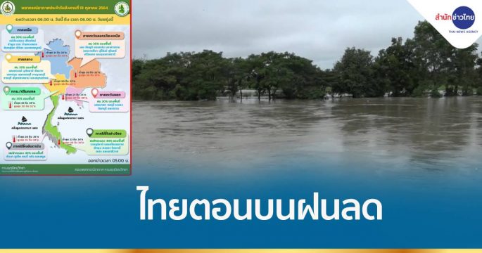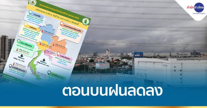 กรมอุตุฯ เผยไทยตอนบนมีฝนลดลง ส่วนภาคใต้ยังคงมีฝนฟ้าคะนอง ส่วน กทม. และปริมณฑล มีฝนร้อยละ 30 ของพื้นที่