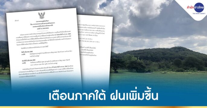 กรมอุตุฯ เตือนภาคใต้ ช่วง 4-5 ธ.ค.65 มีฝนเพิ่มขึ้นและมีฝนตกหนักถึงหนักมากบางแห่ง ส่วนไทยตอนบน อากาศเย็นในตอนเช้า มีฝนเล็กน้อยบางแห่ง