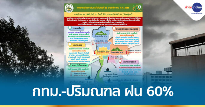 กรมอุตุฯ เผยไทยตอนบนมีฝนตกหนักบางแห่ง และฝนตกหนักถึงหนักมากบริเวณภาคตะวันออก-ภาคใต้ ขณะที่ กทม. – ปริมณฑล ฝนฟ้าคะนอง 60% ของพื้นที่