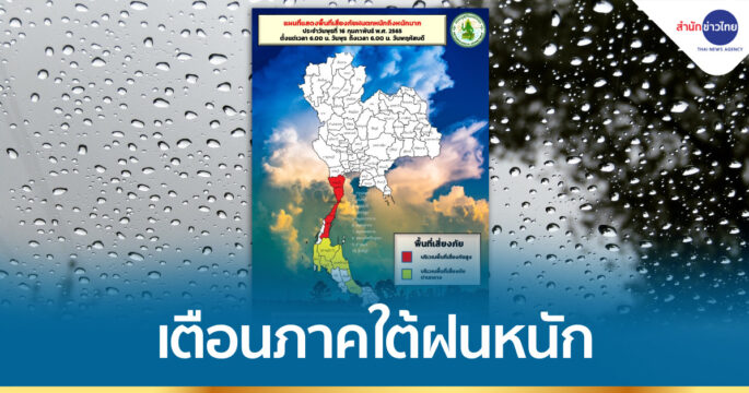 กรมอุตุฯ เตือนภาคใต้มีฝนตกต่อเนื่องและฝนตกหนักถึงหนักมากบางแห่ง ขณะที่ภาคเหนือตอนล่าง ภาคอีสาน ภาคตะวันออก ภาคกลาง รวมถึงกรุงเทพฯ และปริมณฑล ยังมีฝนฟ้าคะนอง