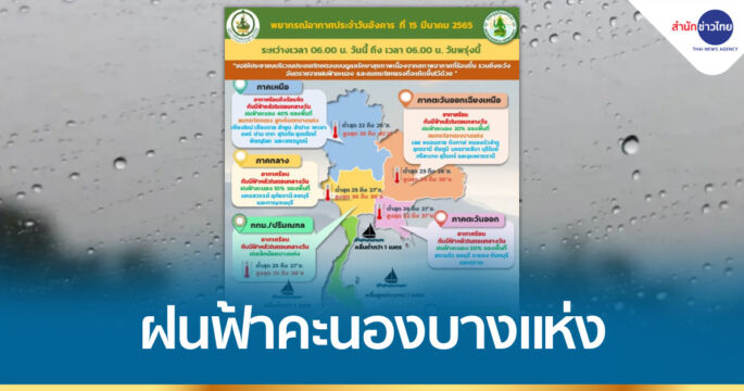 กรมอุตุฯ เผยภาคเหนือตอนล่าง ภาคอีสาน ภาคกลาง รวมทั้งกรุงเทพฯ – ปริมณฑล และภาคตะวันออก มีฝนฟ้าคะนอง กับลมกระโชกแรง